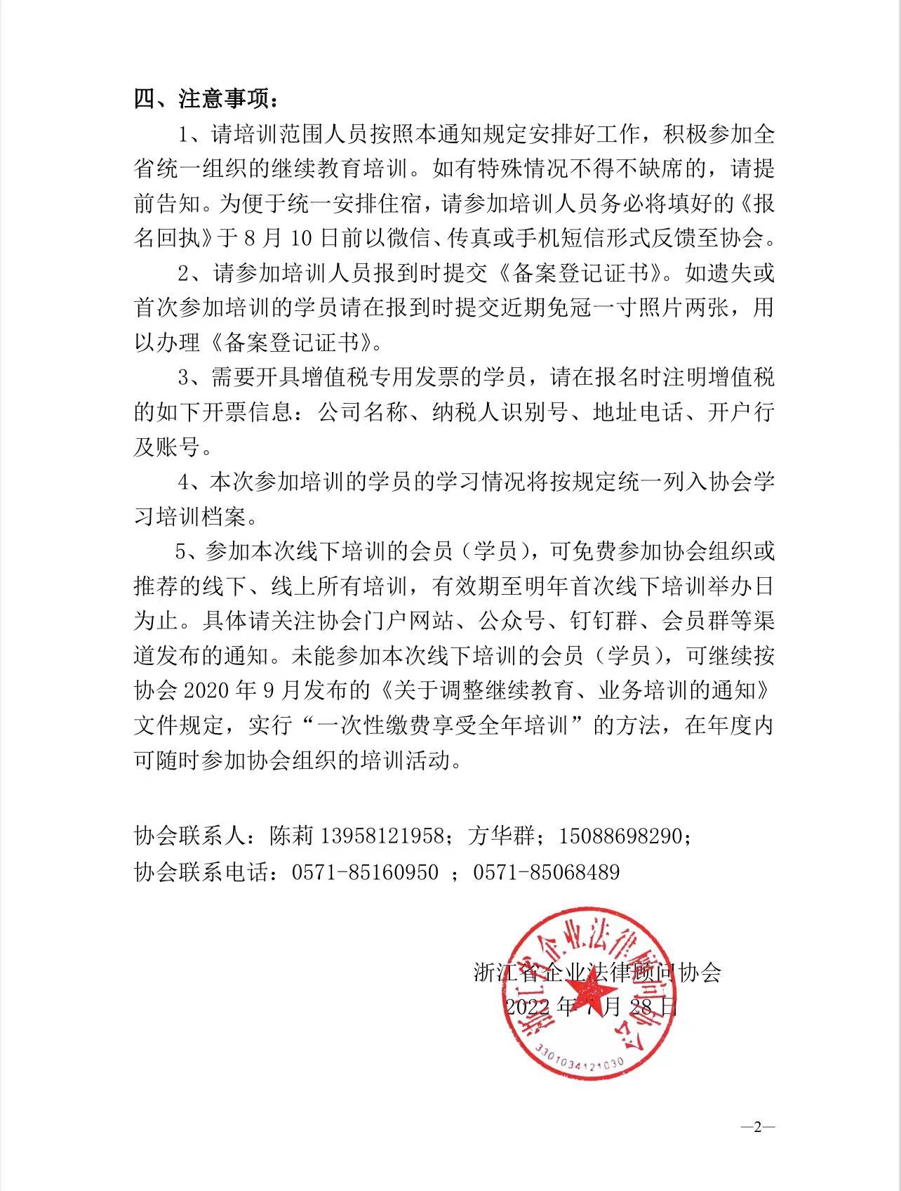 关于举办2022年度第一期浙江省企业法律 顾问继续教育线下集中培训的通知