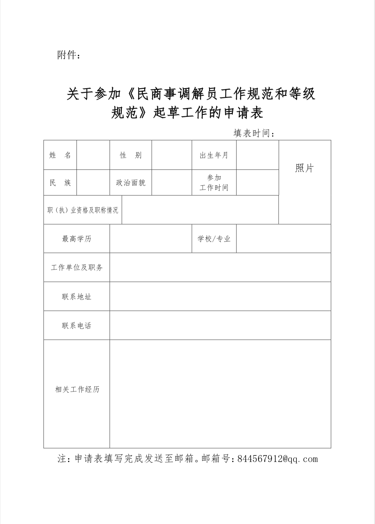 关于邀请参加《民商事调解员工作规范 和等级规范》起草工作的通知