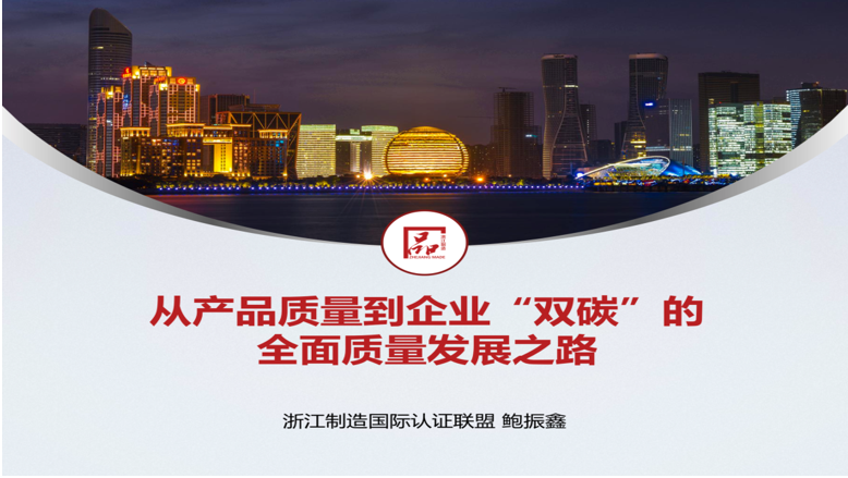 浙江制造国际认证联盟秘书长、高级工程师鲍振鑫,分享了《从产品质量到企业“双碳”的高质量发展之路》。