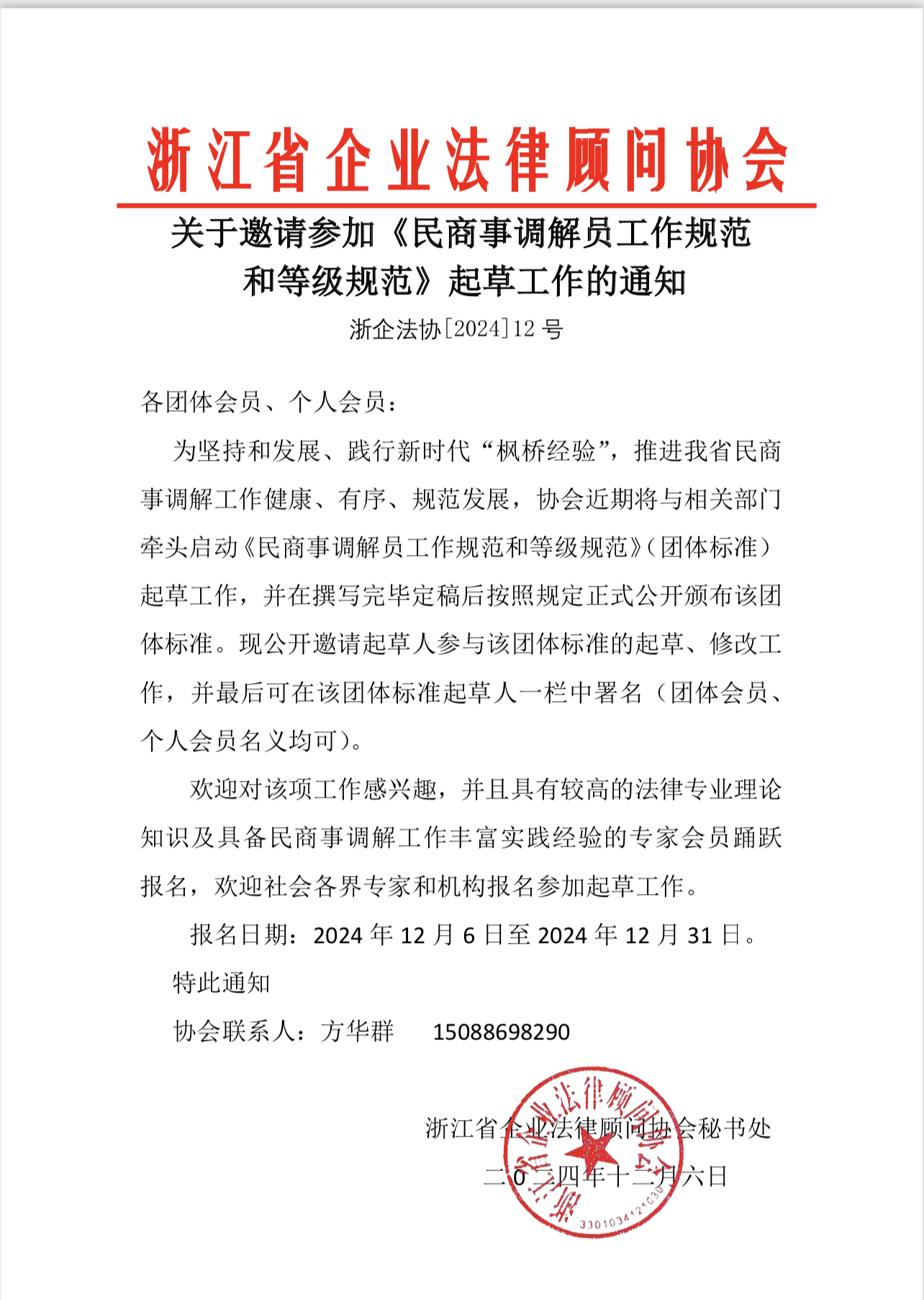 发布时间:2024-12-06 15:12 来源:浙江省企业法律顾问协会