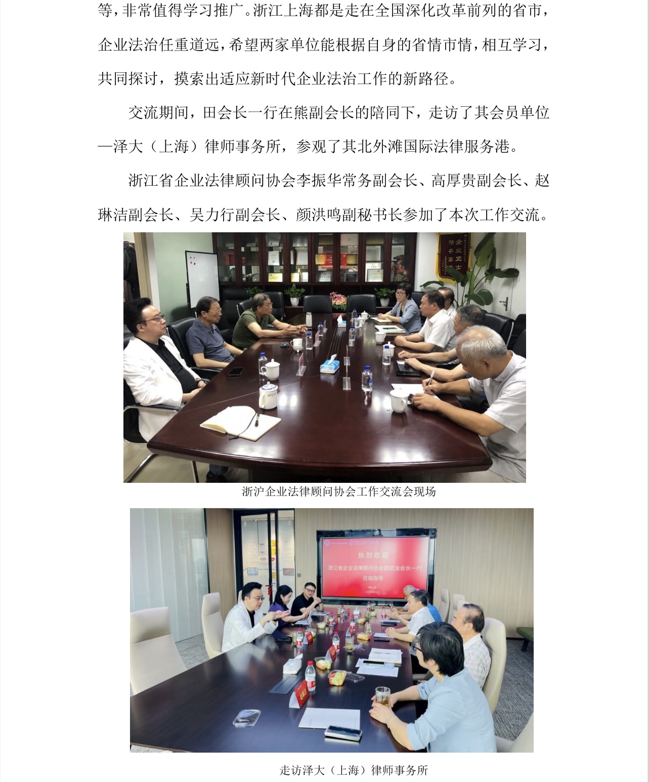 浙江省企业法律顾问协会田招龙会长一行 赴上海市企业法律顾问协会工作交流