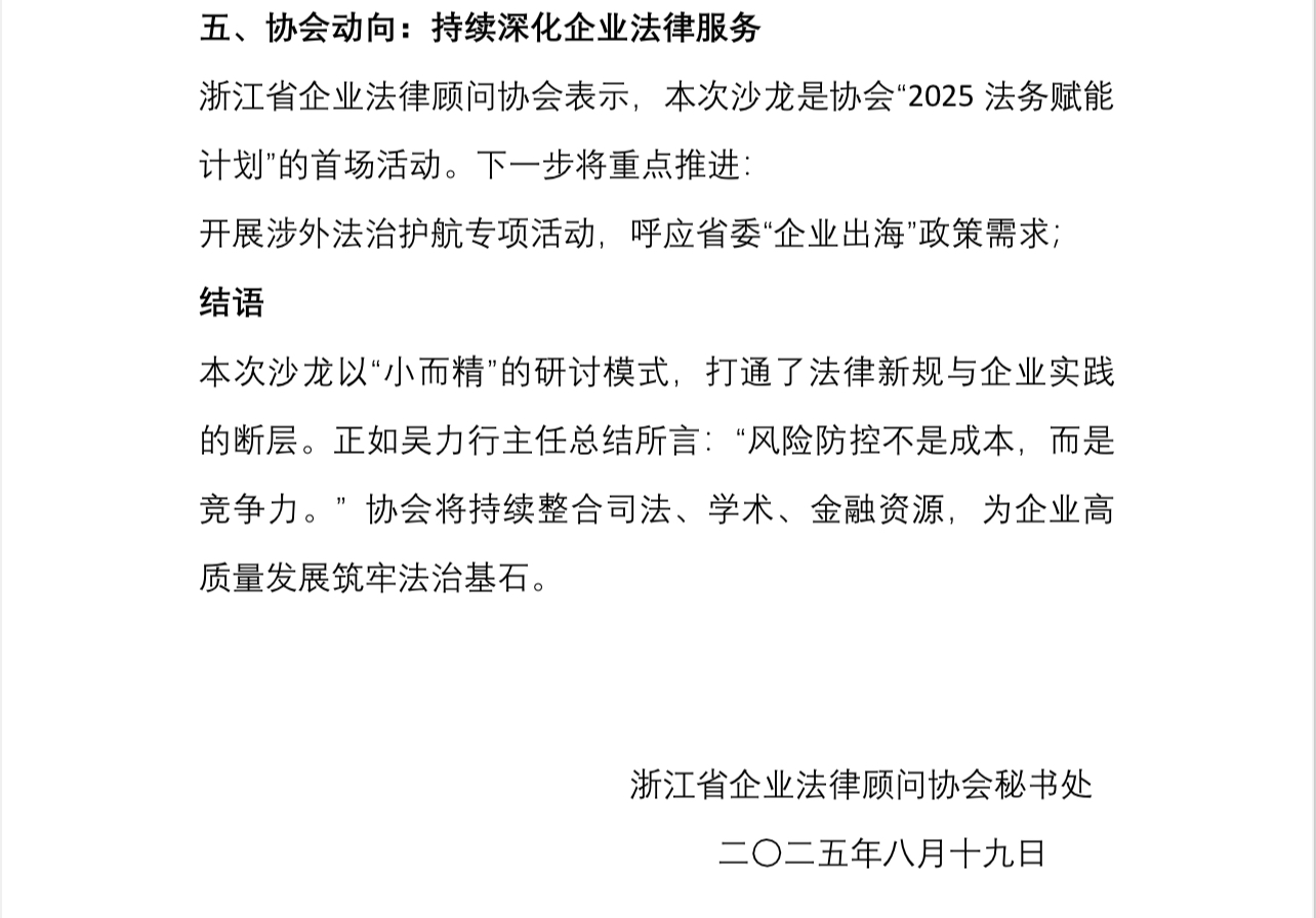 发布时间:2025-08-21 11:48 来源:浙江省企业法律顾问协会